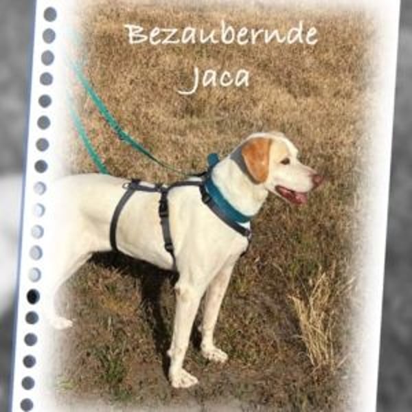 Die schöne Jaca ist eine wahre Menschenfreundin, die es über alles liebt, beschmust und geknuddelt zu werden. Dabei kriecht sie förmlich in ihren Menschen hinein, ohne dabei unangenehm aufdringlich zu werden. Sie genießt die Gesellschaft der Menschen… einfach mit dabei sein. Spaziergänge liebt sie besonders. Dabei geht Jaca sehr manierlich an der Leine. Man kann erkennen, dass es ihr Spaß macht, neue Dinge zu erlernen und umzusetzen.