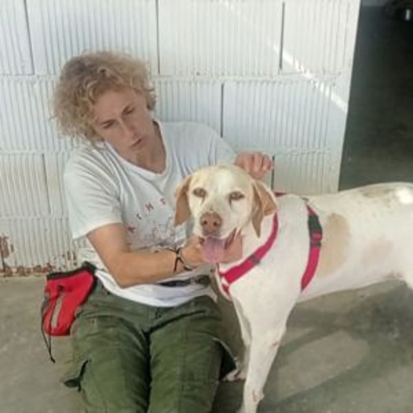 Unsere sanfte Pointerin Jaca wurde zusammen mit Yebra ziellos in den Bergen umherstreunend vor ca. 2 Jahren aufgefunden. Beide wurden ins städtische Tierheim verbracht. Keiner vermisste sie, so dass unser Kooperationstierheim sie zu sich nehmen konnte, als ein Platz frei wurde.
