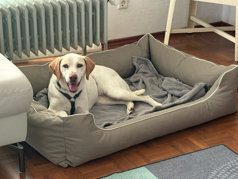 Jaca bleibt einwandfrei für mehrere Stunden allein. Sie ist dabei ruhig und entspannt.