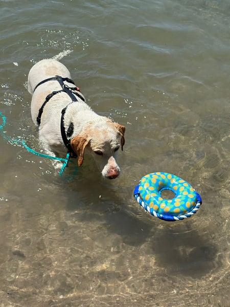 Ihr absolutes Highlight ist das Wasser. Wow, was liebt sie es, im Wasser zu plantschen und sogar zu tauchen! Wasser, das ist ihr Element! Wenn dann noch ein Ball ins Wasser fliegt apportiert sie diesen mit größter Begeisterung.