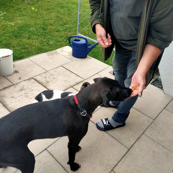 - Kann mit den anderen Hunden auf der Pflegestelle alleine bleiben