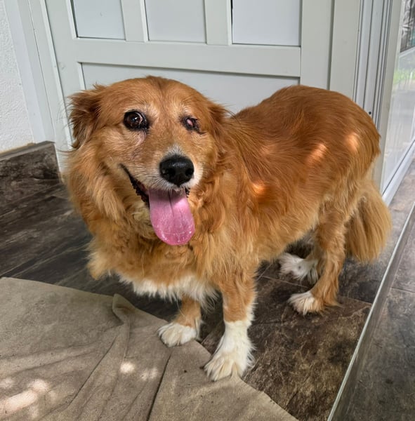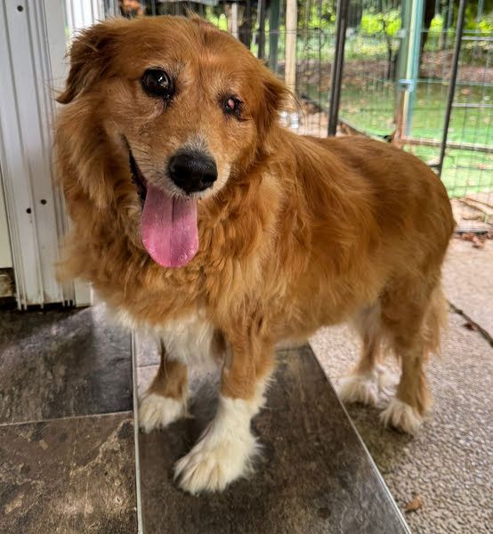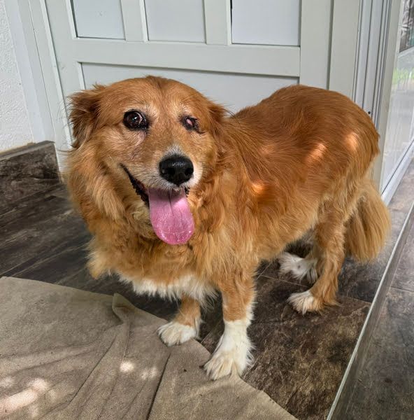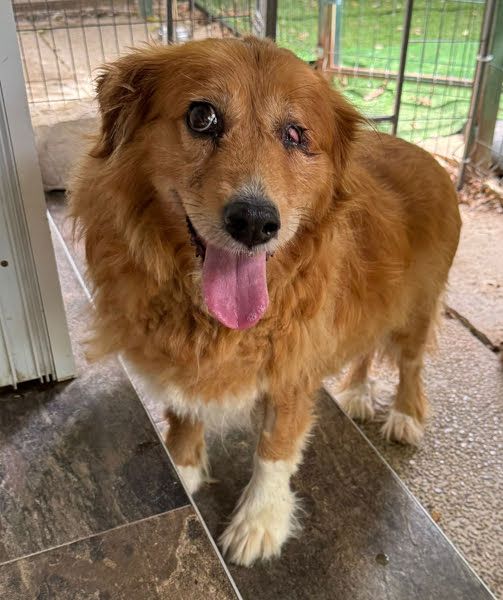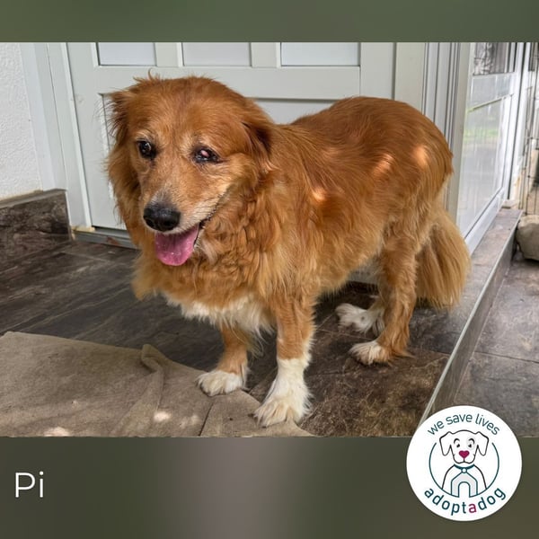 Pi ist etwa 53 cm groß – eine stattliche, aber sehr sanfte Hündin. Ihr fehlt ein Auge, doch