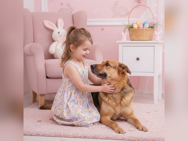 Auch mit kindern würde sie wunderbar zusammen passen , sie spielt vorsichtig und beißt nicht .