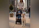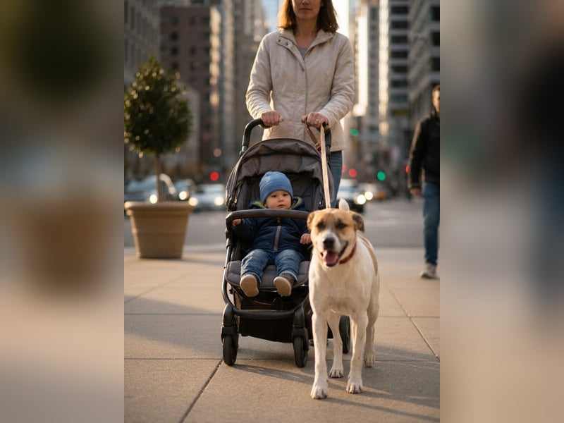 Er kennt die stadt und den lärm aber er wird etwas brauchen um in der neuen Umgebung klar zu kommen , hier sollte man geduld mit ihm haben und mit leckerlis bekommt man auch einiges hin .