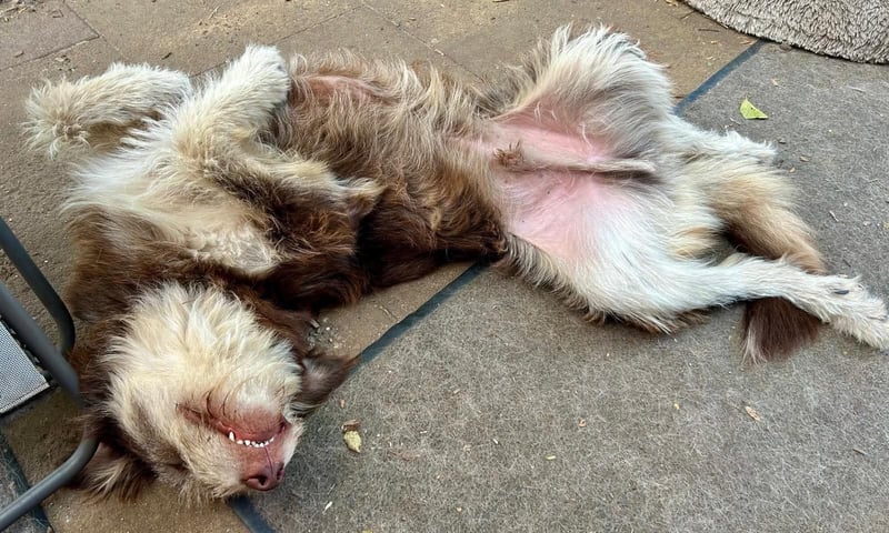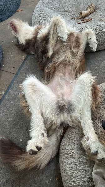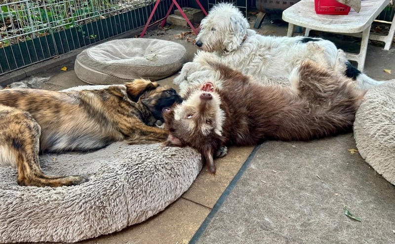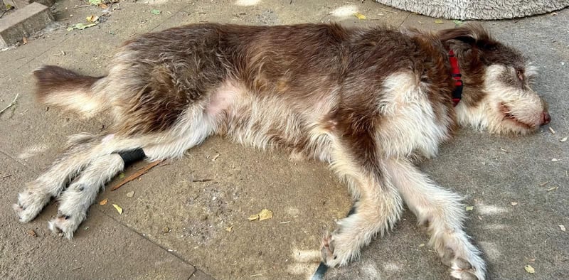 Zur Erklärung: Bei seiner aktuellen Pflegestelle gibt es vier weitere Rüden, was für Red als großem, selbstbewussten Rüden einen permanenten Stress bedeutet.