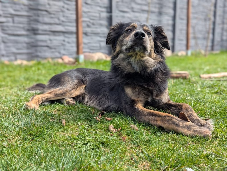 Koda ist einfach ein toller Kerl. Ursprünglich in Rumänien geboren, lebt er seit 2 Jahren in einer Familie. Das Paar hat sich viel Zeit genommen und ihm so einige Grundkommandos beigebracht, auf die er prima hört.