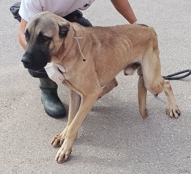 Er ist ein großer, hübscher Kangal Mischlingsrüde und wirklich freundlich. Er mag Menschen sehr gerne und hofft schnell aus dem Shelter raus zu dürfen. Er ist etwas dünn und darf gern noch ein paar Kilos zu legen. Für große Hunde ist der Shelter viel zu eng und absolut nicht geeignet. Wir suchen für ihn ein Herdenschutzhund erfahrenes zuhause.