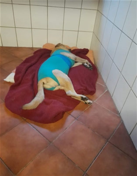 Chum wurde erst vor kurzem ein Geschwür am Hoden entfernt, weswegen er diesen schicken blauen Body tragen musste. Dieses stellte sich als gutartig heraus und wir konnten beruhigt aufatmen. Doch unsere Freude war nur von kurzer Dauer, denn kurze Zeit später fühlte er sich gar nicht mehr wohl. Er wurde grummelig und verwehrte sein Futter, was sehr untypisch ist für ihn.