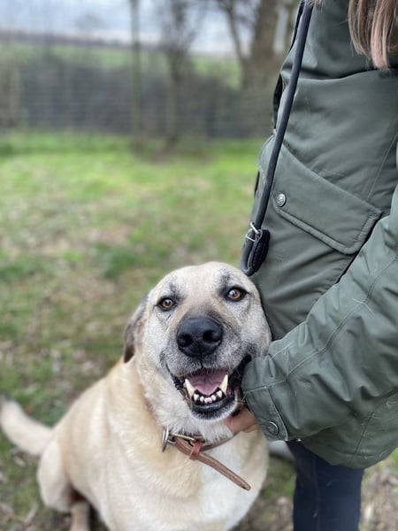 Tierheimmutti Andrea hat über ihn nur positives zu berichten: er ist genügsam, sozial, lustig, freundlich. Er pöbelt nicht rum, verteidigt keine Ressourcen gegenüber Menschen. Auch uns (fremden!) Besucherinnen gegenüber war er einfach nur charmant. Ein bisschen wie ein überdimensionierter Labrador: lustig, aufgeschlossen, nett, aber auch ein bisschen stoisch und hin und wieder mal am gucken, wo er eine Grenze testen könnte.