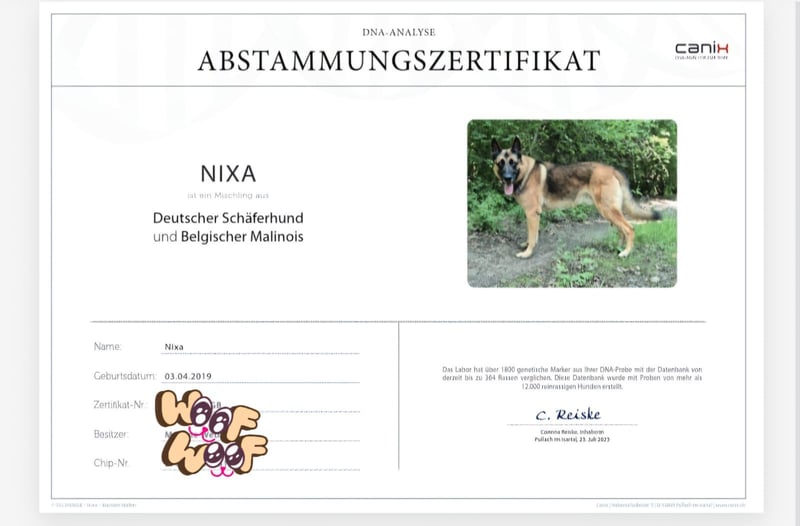 Ein DNA-Rassenachweis liegt vor und ist in der Bildergalerie als letztes Foto einsehbar.