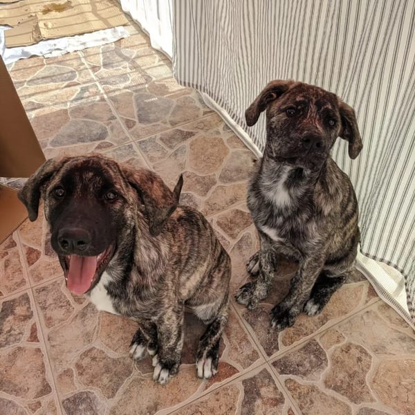 Die beiden Jungwelpen (aktuell 6 Monate alt) wurden im Welpenalter zusammen mit ihrem Bruder ausgesetzt auf der Straße vorgefunden.