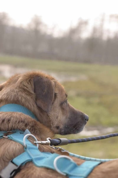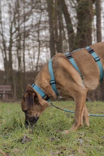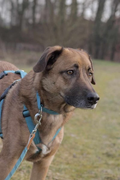 Draußen zeigt sich Fred insgesamt entspannt. An der Leine läuft er sehr gut und begegnet anderen Hunden eher zurückhaltend als aufgeregt – Pöbeln ist nicht sein Thema. Ein Grundgehorsam ist vorhanden. Jagdtrieb ist nur gering ausgeprägt und zeigt sich selten. Bei lauten Geräuschen schaut er zwar aufmerksam, reagiert aber nicht ängstlich.