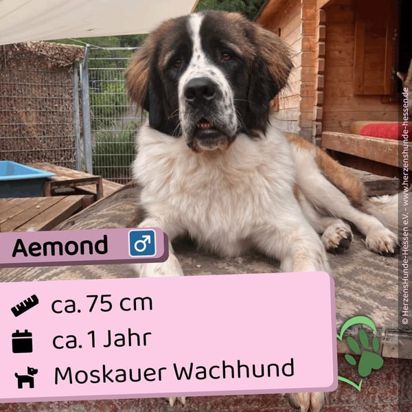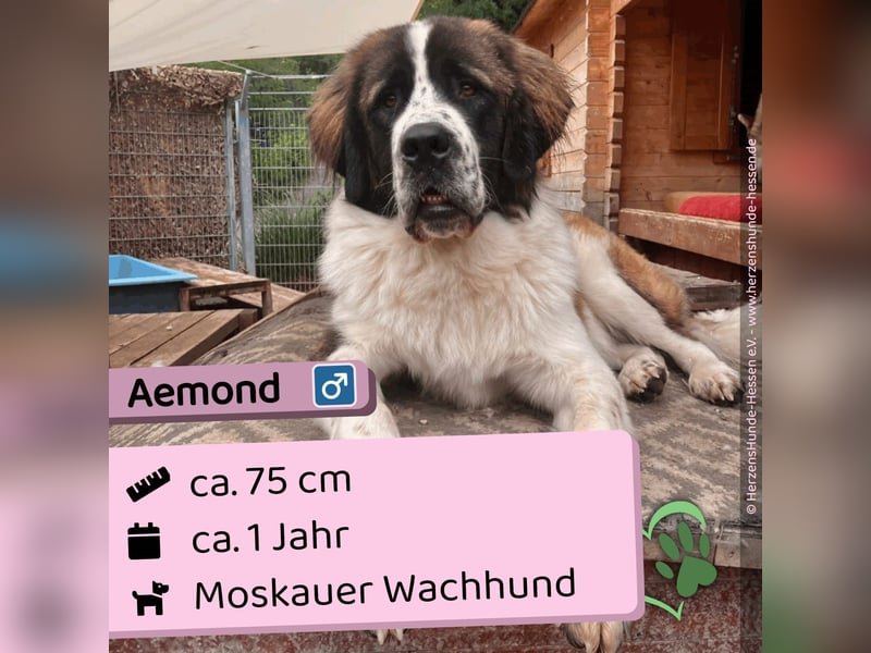 Aemond ist ein 1-jähriger Moskauer-Wachhund. Er wiegt aktuell 45 kg und ist ein großer, freundlicher und verspielter Hund, der in Zukunft noch etwas an Gewicht zulegen wird. Er hat sich von einem scheuen Straßenhund zu einem lieben, treuen Begleiter entwickelt und wird nach einer Eingewöhnungszeit schnell zutraulich. Die Leine hat er bereits kennengelernt.