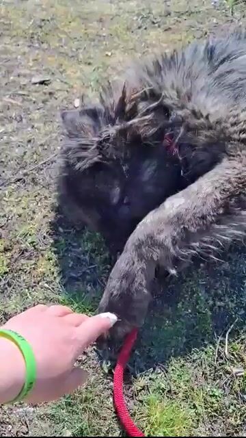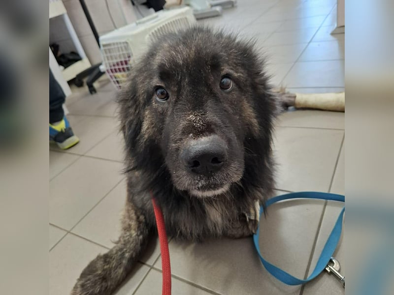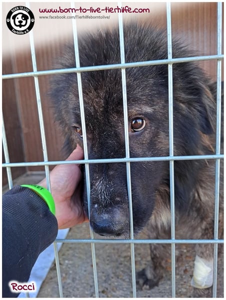 Rocci hatte einen schweren Autounfall, bei dem er sich den Beckenknochen brach und großflächige Wunden an Bauch und Hinterbein zuzog. Seitdem befindet er sich in einer intensiven Langzeitbehandlung. Zweimal pro Woche muss er zum Tierarzt, um seine speziellen Wundbehandlungen tapfer über sich ergehen zu lassen – und er meistert das mit einer Geduld, die uns immer wieder staunen lässt.