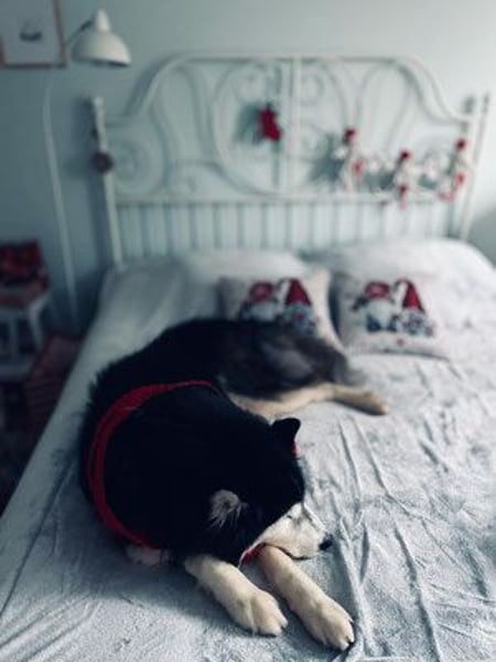 Es scheint so, als hätte er die Nase voll von einem Leben draußen oder er war es bisher auch noch nicht gewöhnt. Als wir ihn in unserer Waldpension mit Suri zusammenführten hörte er nicht auf zu bellen und hätte vermutlich auch die ganze Nacht weitergemacht. Also wurde er ins Haus gelassen, wo er sich sofort neben die Heizung legte und einschlief. Er kann sehr gut alleine bleiben, ist stubenrein (5 Stunden) und schläft nachts durch. Wie alle Huskys spricht er gern und immer wenn er ein Anliegen hat lässt er uns das auf die typische Husky Art und Weise wissen. Ares ist für sein Alter noch durchaus fit. Nur seine Zähne sind leider in einem grauenhaften Zustand und bei der Kastration wird er sich von einigen trennen müssen.