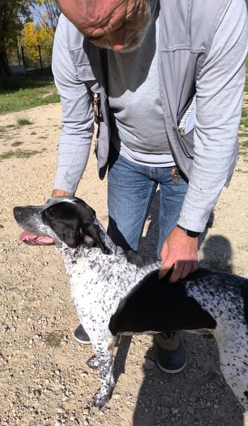 Chuso wurde von den Tierschützern auf der Straße abgeholt. Er trug ein viel zu großes Halsband und hatte einen Chip, er wog weniger als 15 kg.