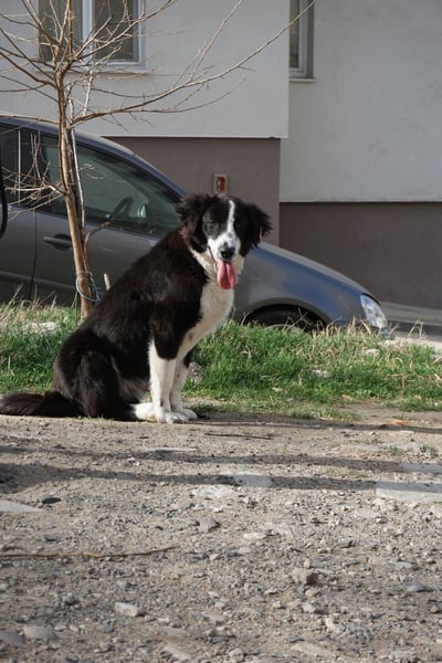 Im Alter von ca 8 Monaten lebte er sich vor dem Haus einer befreundeten Tierschützerin ein und bellte hin und wieder Menschen an.