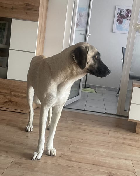 - wiegt 34 kg und ist 65cm groß (Schulterhöhe)