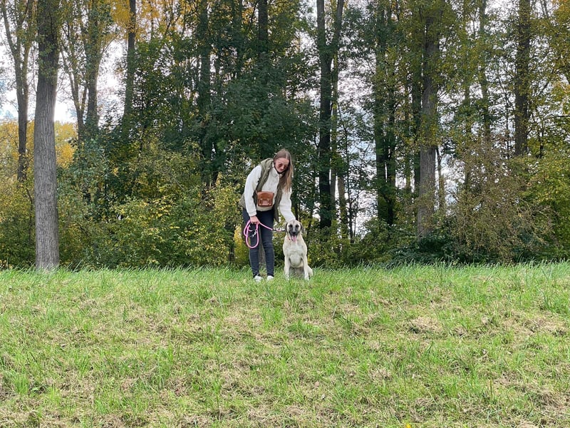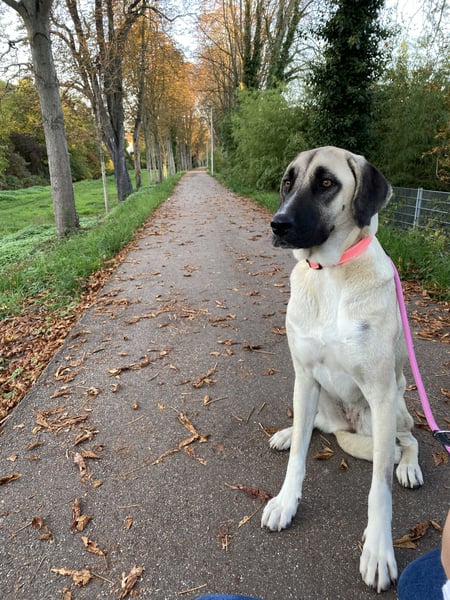 - an der Leine läuft sie super und reagierte nicht auffällig auf andere Hunde, sie ist ruhig und neugierig