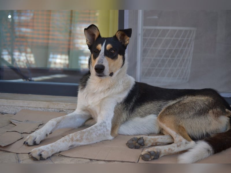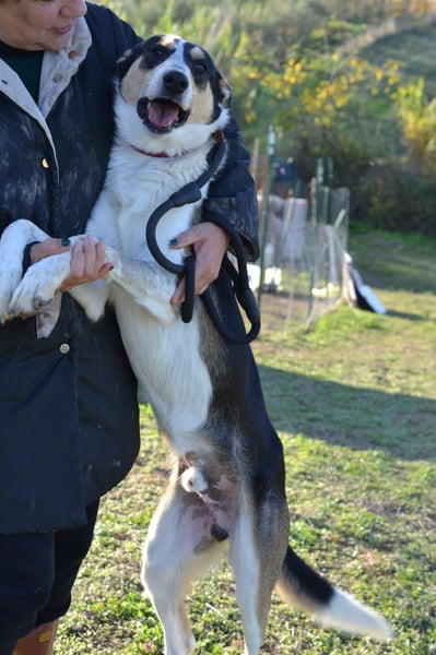 Lupo streunte in den Feldern herum und hatte das Glück, von einer Tierschützerin gefunden zu werden, die ihn in ihrem Refugium aufnahm. Lupo sieht auf einem Auge lediglich Umrisse, das beeinträchtigt ihn aber nicht und verursacht keine Schmerzen. Er ist mit anderen Hunden verträglich. Er ist nicht ängstlich, hat ein freundliches, ausgeglichenes Wesen und geht gut an der Leine.