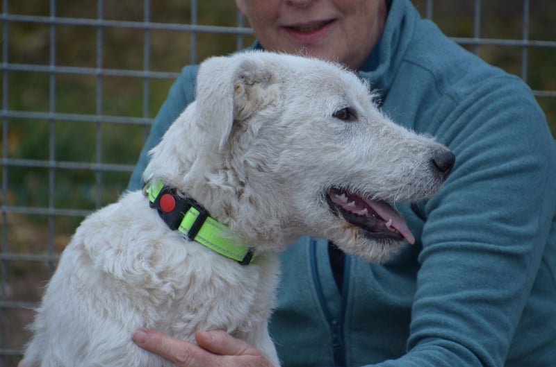 Emil wird über die Hundehilfe Piroschka e.V. vermittelt.
