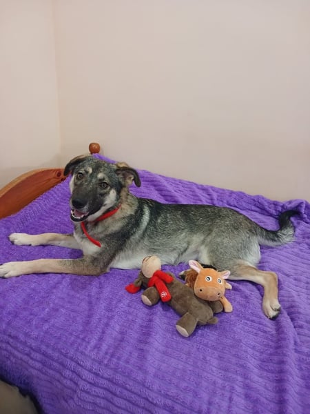 Sie liebt jede art von Spielzeug und ist immer gerne bereit mit ihren menschen zu spielen .