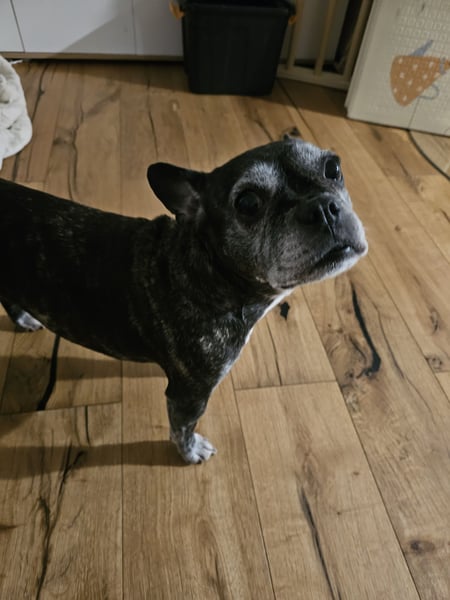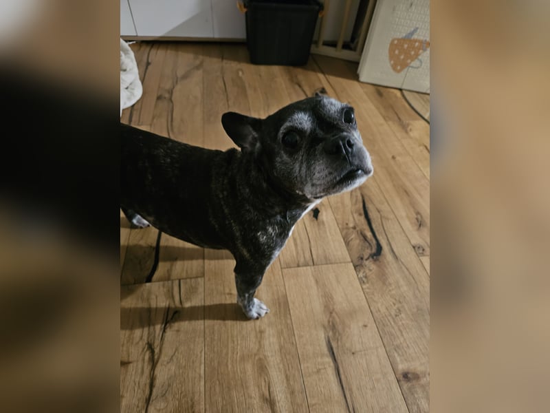 Das ist Amy, 9 Jahre, eine kleine Mischlingsdame. Genau wissen wir nicht was in ihr steckt. Frenchie auf jeden fall.