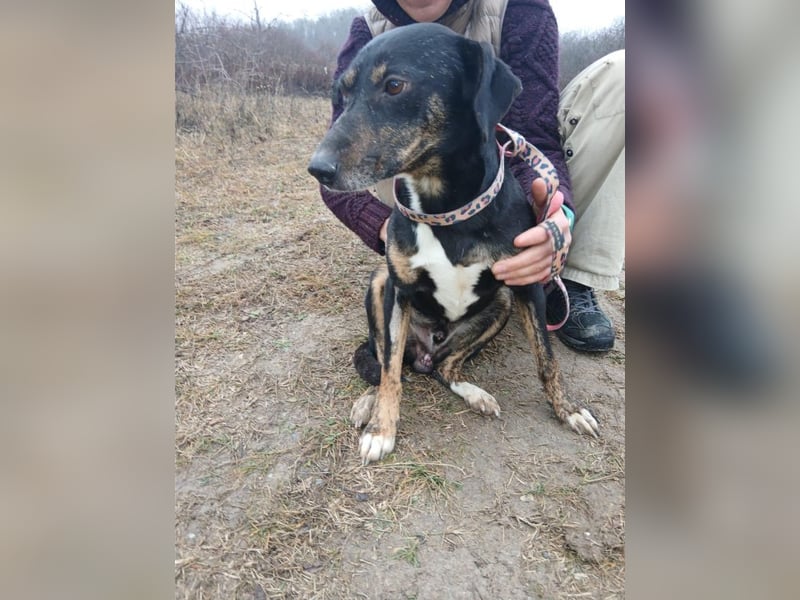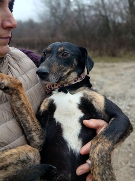 Csiki stammt aus einem Haus mit vielen Hunden in Ungarn. Nun lebt er bei Edina auf Pflegestelle.