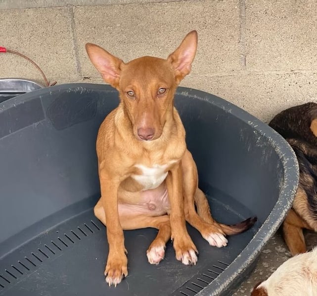 In seinem kurzen Leben hat Molar offenbar schon schlimmes erlebt, denn sein Alltag ist geprägt von Unsicherheit. Am liebsten liegt er mit seiner besten Hundefreundin in seiner kleinen Hütte im Zwinger und kommt nur heraus, wenn es Futter gibt.