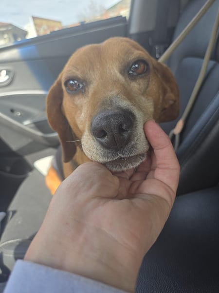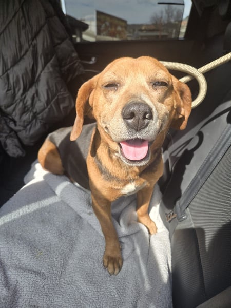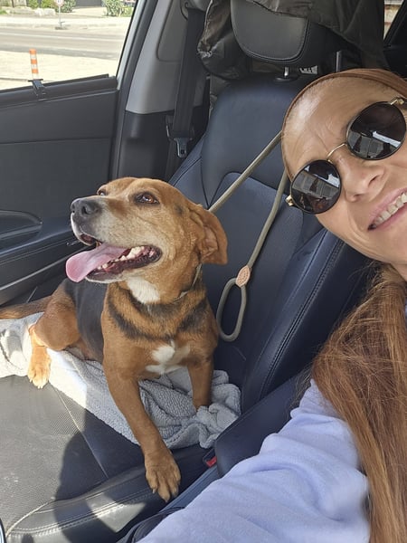 Frida lief allein Nähe einer Landstraße umher. Unsere Tierschützerin sah sie und stieg aus dem Auto - da entschied sich Frida, dass sie fortan mit möchte. Sie freute sich über die menschliche Zuwendung und wollte unbedingt ins Auto einsteigen.