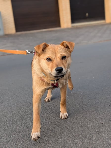 Im Alltag zeigt sich Maria angenehm ausgeglichen. Sie findet schnell zur Ruhe und kann in ihrem gewohnten Rudel bereits bis zu zwei Stunden alleine bleiben. Das Laufen an der Leine klappt schon richtig gut, auch wenn sie bei ungewohnten Situationen wie entgegenkommenden Autos manchmal noch etwas unsicher reagiert. Mit ein wenig Geduld und liebevoller Führung wird sie hier sicher schnell noch mehr Sicherheit gewinnen.