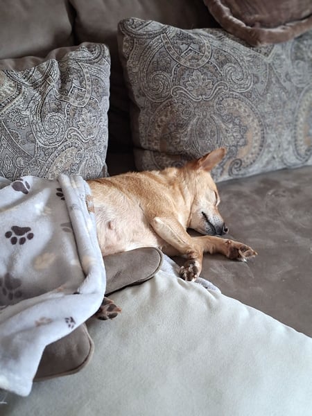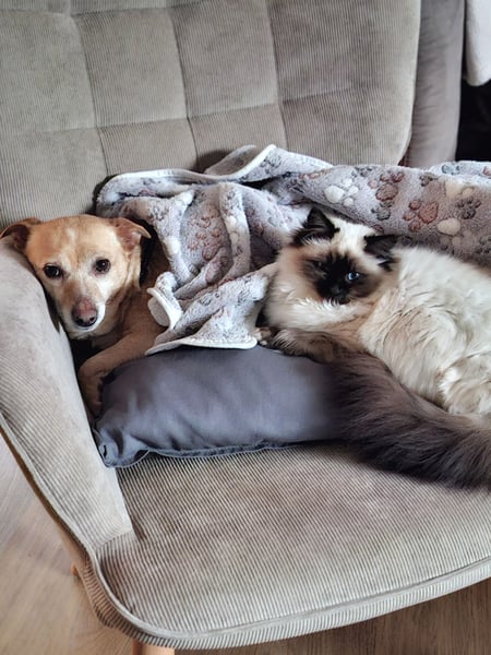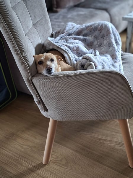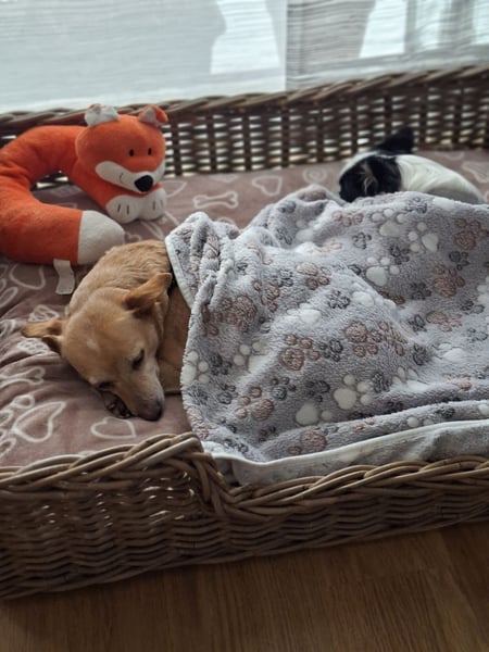 Elli liebt es mit im Bett zu schlafen. Sie sucht die Nähe und Geborgenheit ihrer Bezugsperson.