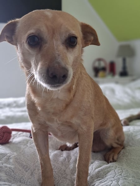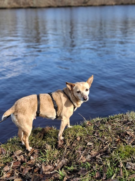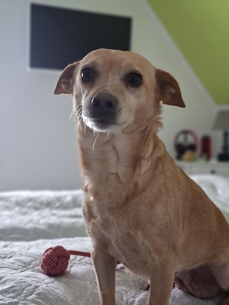 Sie ist eine ruhige, liebevolle, freundliche, verschmuste, lernstarke und umgängliche Hündin.