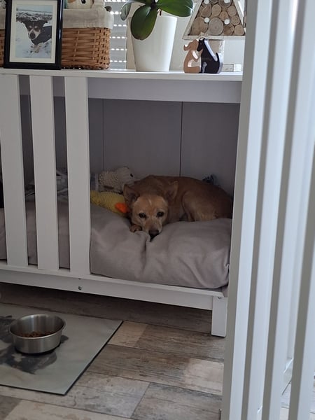 Sie bleibt mit unseren Vierbeinern für 1-2 Std alleine, sollte jedoch nicht wesentlich länger alleine bleiben müssen. Elli hat gerne ihre Familie um sich. Das gibt ihr sehr viel Sicherheit.