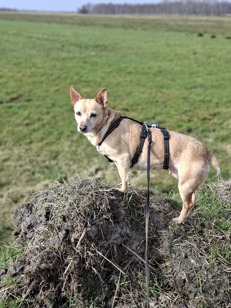 Elli ist jetzt stubenrein und weiß was "Sitz", "Bleib", "Stop", "Aus" und "Hier" bedeuten. Die Leinenführigkeit konnte sie zügig umsetzen.