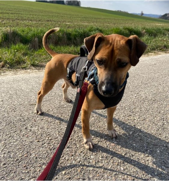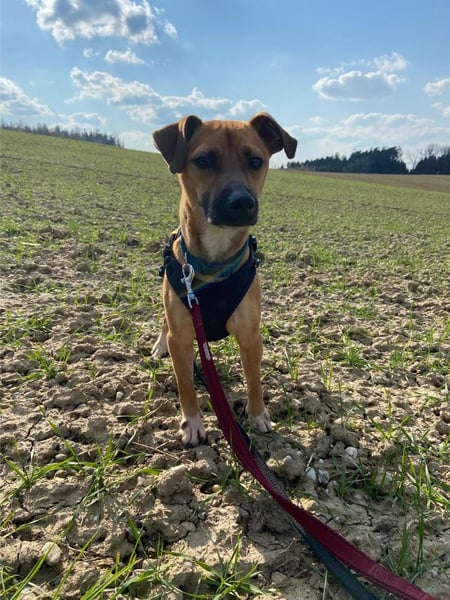 Rudolf kennt Halsband, Geschirr und Leine und lässt sich diese unbeeindruckt an- und ausziehen. Draußen zeigt sich Rudolf neugierig und aufmerksam. Er erkundet interessiert seine Umgebung und entwickelt Freude an Bewegung. Das Laufen an der Leine wird aktuell noch geübt. Hier braucht er weiterhin Unterstützung und Menschen, die ihm Sicherheit geben, denn aktuell reagiert er Überforderung noch mit Bellen.