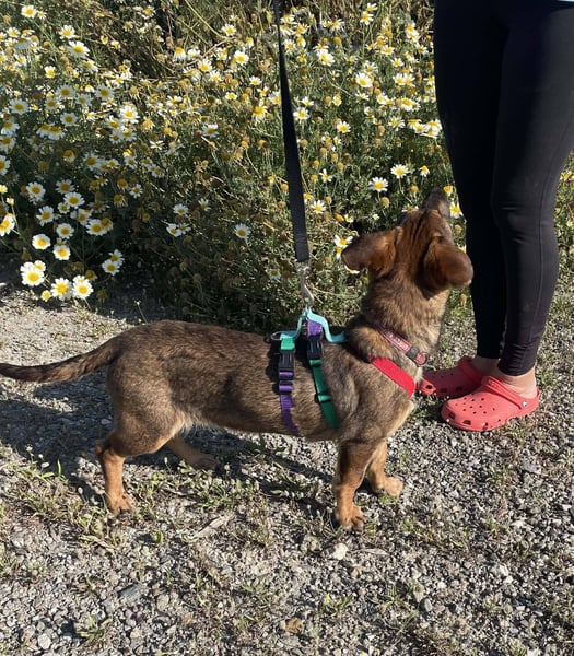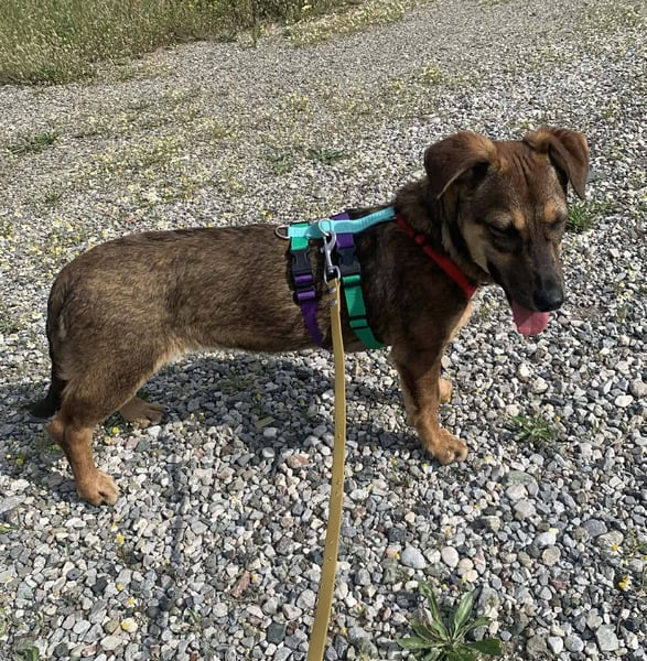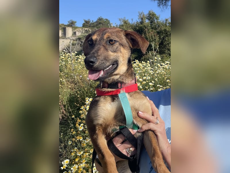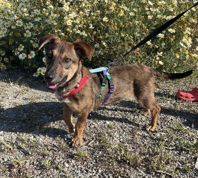 Sie zeigt sich in unserer Auffangstation als eine sehr fröhliche Hündin, die einen immer mit einem bezaubernden Lächeln begrüßt. Sie ist sehr aktiv und macht gerne bei allem mit, was man tut. Sie ist intelligent und lernt schnell. Dottie liebt Menschen und ist gut sozialisiert. Sie sitzt brav im Auto und läuft gut an der Leine. Sie wäre eine perfekte Familienhündin, die ihre Spaziergänge mit ihren Menschen lieben würde. Dottie wurde ca.04/2025 geboren, ist ca.35cm hoch und wiegt etwa 9,2 KG. Natürlich ist Dotti entwurmt, geimpft und gechipt, außerdem ist sie kastriert. Sie wurde negativ auf die MMK Krankheiten getestet. Unsere Hunde werden nur nach einer positiven Platzkontrolle im Sicherheitsgeschirr ( 20€) und gegen einen Adoptionsvertrag abgegeben. Wer verliebt sich in diese süße Maus??