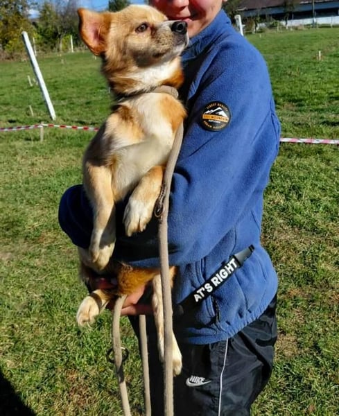 Er geht schon gut an der Leine, kommt mit Hunden und Katzen zurecht. Er ist auch freundlich zu Menschen, wie man auf den Bildern sieht , jedoch begegnet er Ihnen erstmal etwas skeptisch. Diese Skepsis lässt sich mit Leckerli jedoch sehr schnell überwinden .