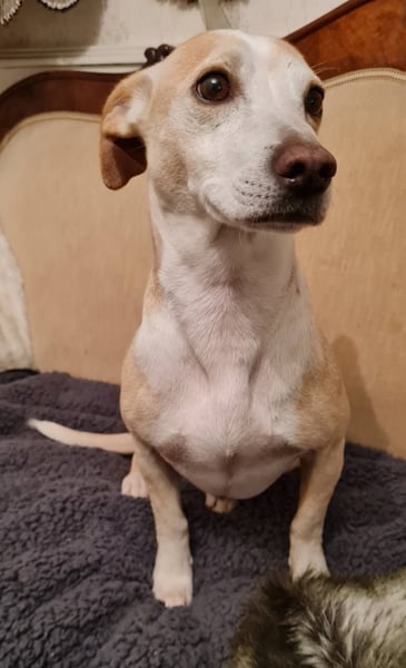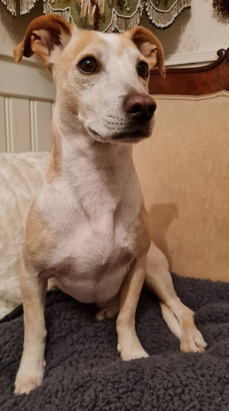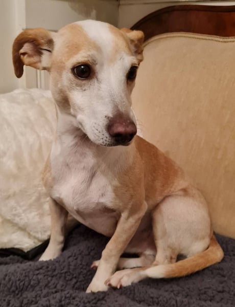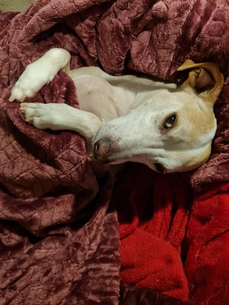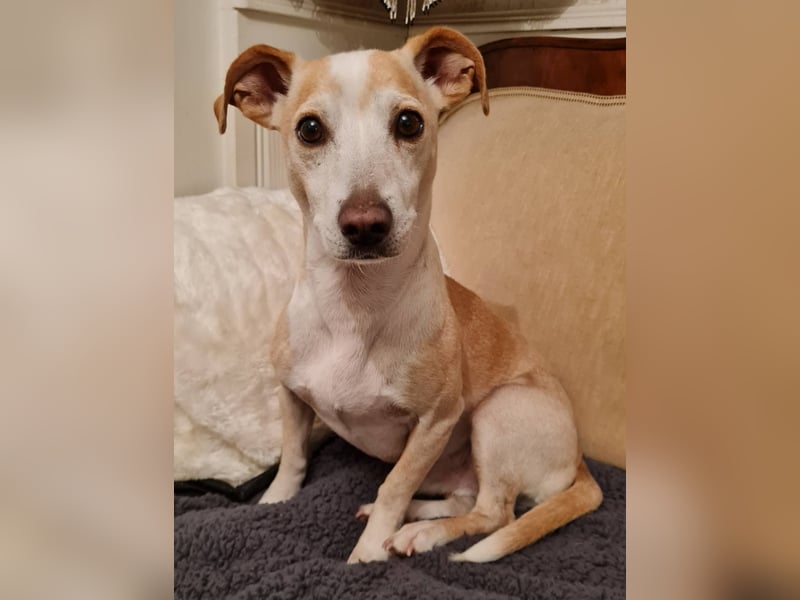 Goyo ist ein ruhiger Hund, kein Beller. Nachts sucht er Körperkontakt und möchte unter der Decke schlafen.