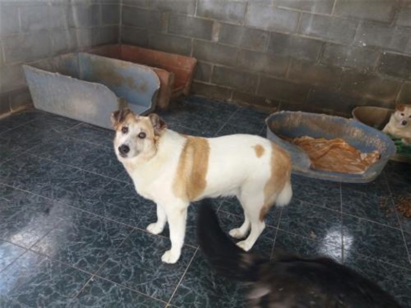 DERA ist sehr scheu und kommt ursprünglich von einem anderen Tierheim, denen wir -ausgeholfen- haben, da sie absolut keinen Platz mehr hatten. Sie lebt mit MINERVA in einem Zwinger mit Zimmer (allerdings kahl und kalt - siehe Fotos). Sie ist nicht anfassbar, deswegen kann ihr Alter weder gesagt noch geschätzt werden. Sie lebt aber glücklich im Hunderudel. Nur die Umstände im Tierheim könnten noch verbessert werden....