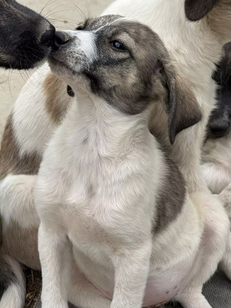 Luna ist welpentypisch tapsig verspielt, aufgeschlossen gegenüber Menschen und verträglich mit anderen Hunden.