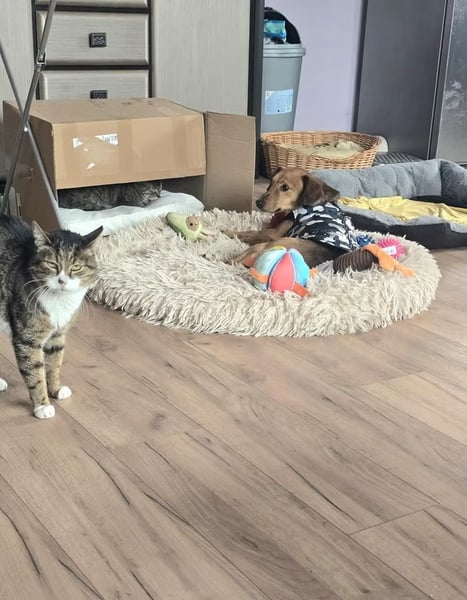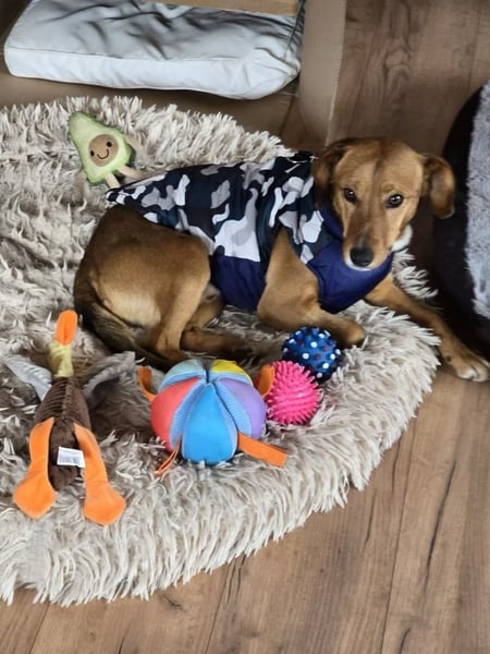 Finn wurde vergiftet auf der Straße gefunden und umgehend zum Tierarzt gebracht. Er konnte gerettet werden und hat sich zum Glück komplett erholt.