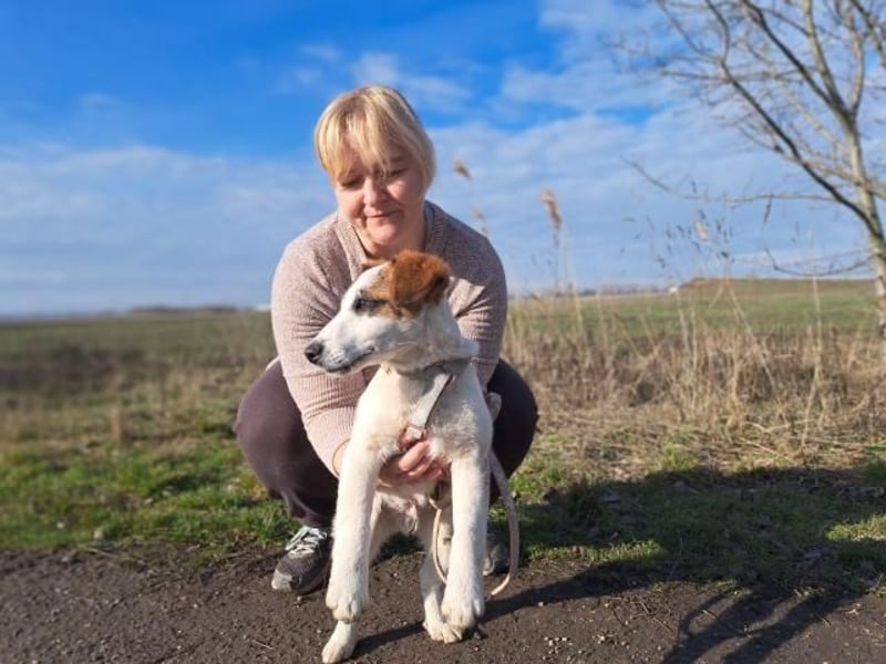 Welpen in Beethovens Alter befinden sich in einer der schönsten, aber auch prägendsten Phasen ihres Lebens. Sie lernen täglich Neues, entdecken die Welt mit allen Sinnen und legen in diesen Wochen den Grundstein für ihren Charakter. Mit der richtigen Förderung, viel Geduld und liebevoller Konsequenz werden sie zu treuen, ausgeglichenen Begleitern fürs Leben. Beethoven bringt hierfür wirklich alles mit, um ein quicklebendiger und tief verbundener Begleiter zu werden. Wenn Sie bereit sind, Zeit, Liebe und Geduld in den kleinen Kerl zu investieren, dann steht diesem gemeinsamen Werdegang nichts mehr im Wege. In Beethoven vermuten wir Foxterrier-Gene. Diese wunderbaren Hunde binden sich gerne und intensiv an ihre Menschen, haben aber auch Ansprüche an Auslastung und Bewegung. Daher sollte Beethoven – wie alle Hunde – gerne eine Hundeschule oder einen passenden Trainer besuchen.