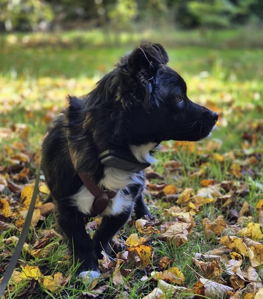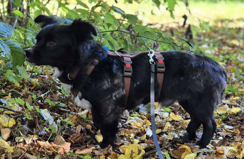 Seinem Pflegefrauchen vertraut er schon sehr – lässt sich anfassen, hochheben und erträgt Fellpflege oder Krallenschneiden tapfer wie ein kleiner Held (auch wenn er sich dabei wohl denkt: „Na toll, jetzt bin ich wieder salonfähig…“). Draußen läuft er brav an Geschirr und Leine, neugierig, aber achtsam – und wenn’s ihm reicht, zeigt er charmant an: „So, und jetzt zurück auf mein Sofa bitte.“