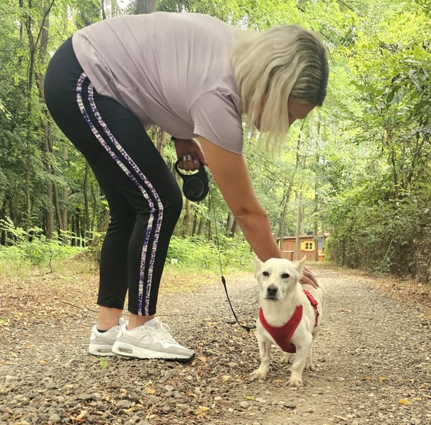 brav an der Leine, genießt Spaziergänge und liebt es, draußen zu sein – schließlich hat er