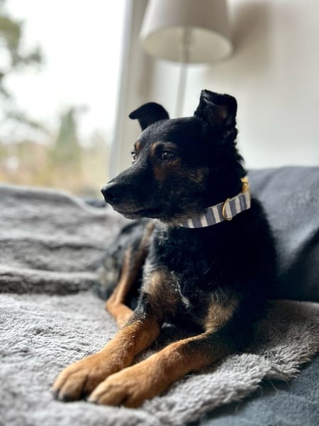 Im Haus zeigt sich Dante von seiner besten Seite. Er ist stubenrein, schläft ruhig in seinem Körbchen und kann wunderbar entspannen. An der Leine läuft er vorbildlich, kennt die Grundkommandos wie Sitz, Platz und Bleib und reagiert zuverlässig auf den Rückruf. Dante arbeitet gern mit seinem Menschen zusammen, lernt neue Tricks mit großer Freude und zeigt dabei seine kluge, kooperative Seite. Auch in der Hundeschule beweist er Geduld und Konzentration.