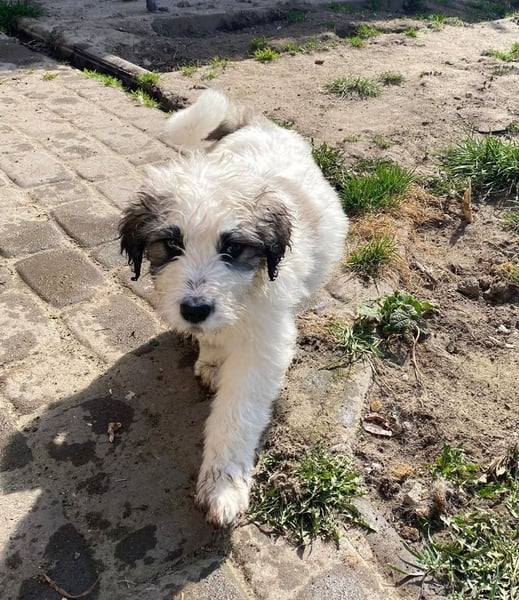 Wie groß sie einmal werden, lässt sich schwer sagen – die Eltern sind unbekannt. Wir vermuten eine mittlere/große Größe.