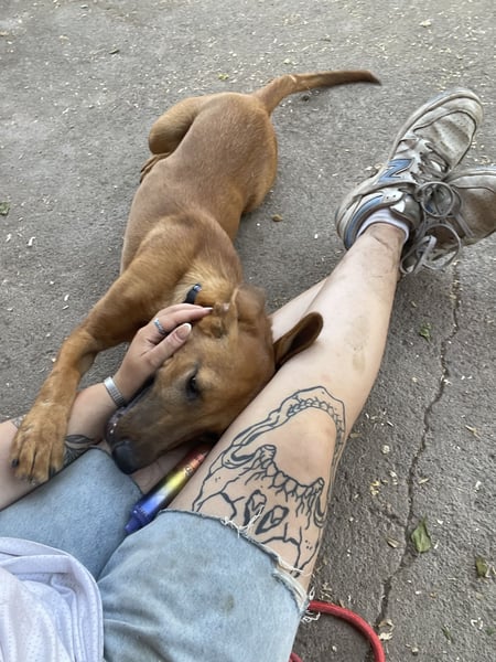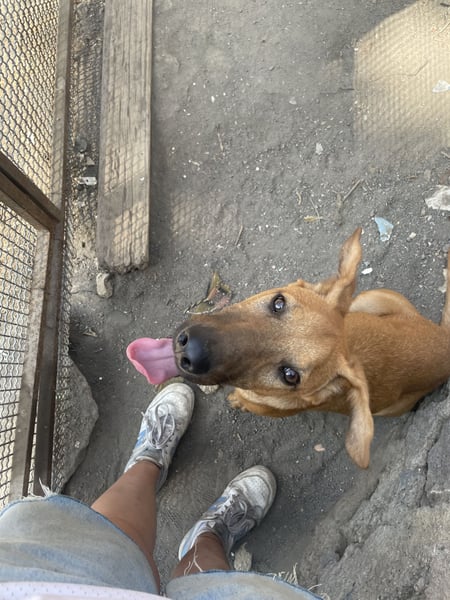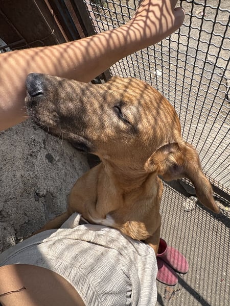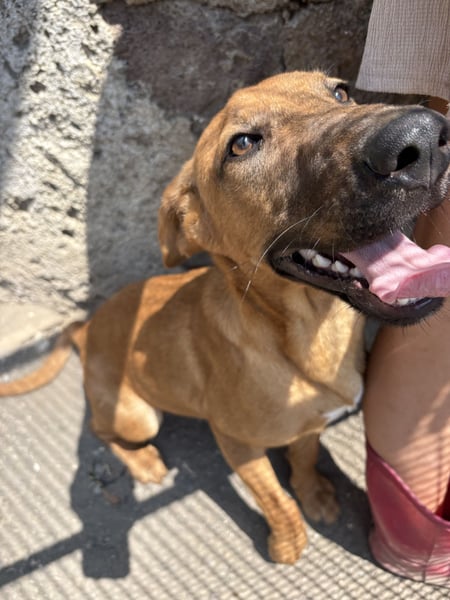 This light brown young dog melts every heart with his cheerful nature. He loves to roam and is still very cuddly.