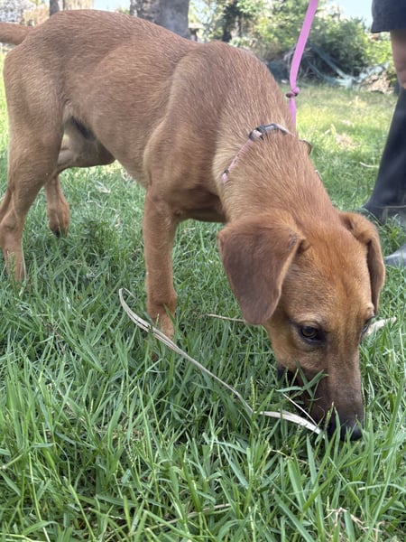 Dieser hellbraune Junghund bringt mit seiner fröhlichen Art jedes Herz zum Schmelzen. Er liebt es zu toben und ist dabei trotzdem sehr verschmust.