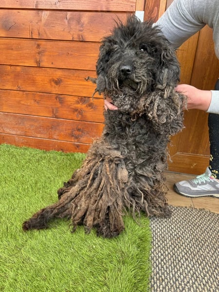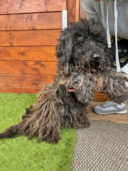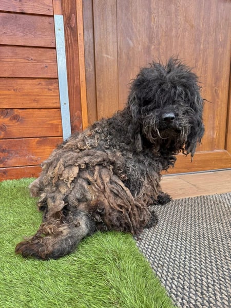 Allerdings hatte er noch mehr Pech und wurde mit drei weiteren Hunden separat gehalten. Völlig abgeschottet in den Ruinen eines alten Hauses – umgeben von Müll, voller Flöhe, ohne Schutz und ohne menschliche Nähe.